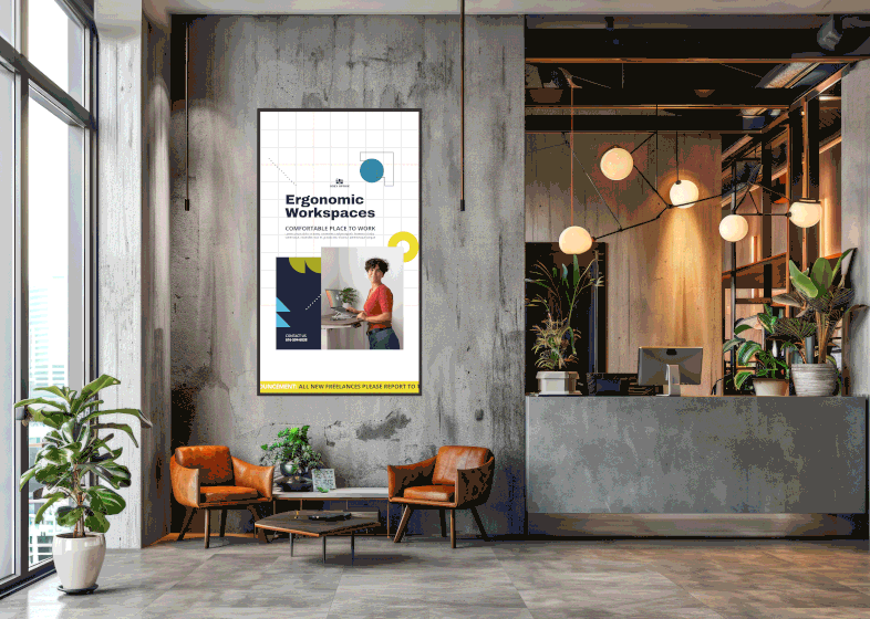 Freestanding digital signage designed for visibility in lobbies, hallways, and high-traffic shared spaces. Runs on CleverLive for seamless content scheduling and updates.