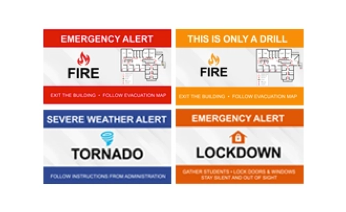 Broadcast synchronized audio and visual alerts to every classroom.
