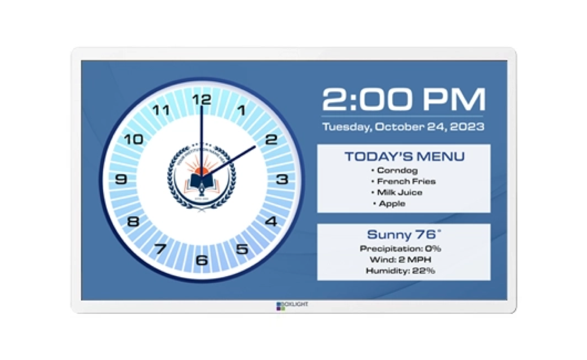 TimeSign is a 21.5" cost-effective classroom digital display that delivers far more than a traditional clock. Affordable yet versatile, it keeps students, teachers, and staff on schedule while sharing daily announcements, alerts, and emergency notifications reliably and clearly. Designed to maximize value, TimeSign combines budget-friendly pricing with high-quality hardware, making it the perfect choice for schools that need impactful communication tools without the high cost.